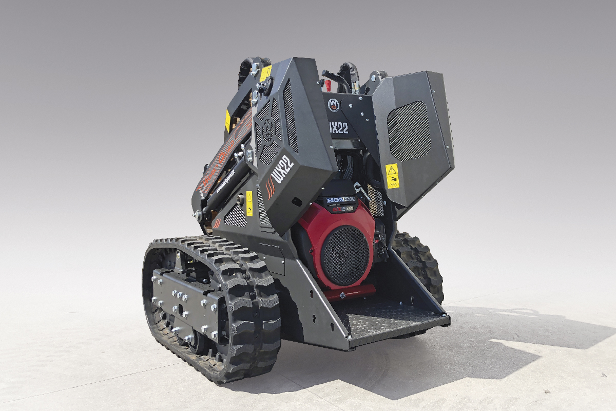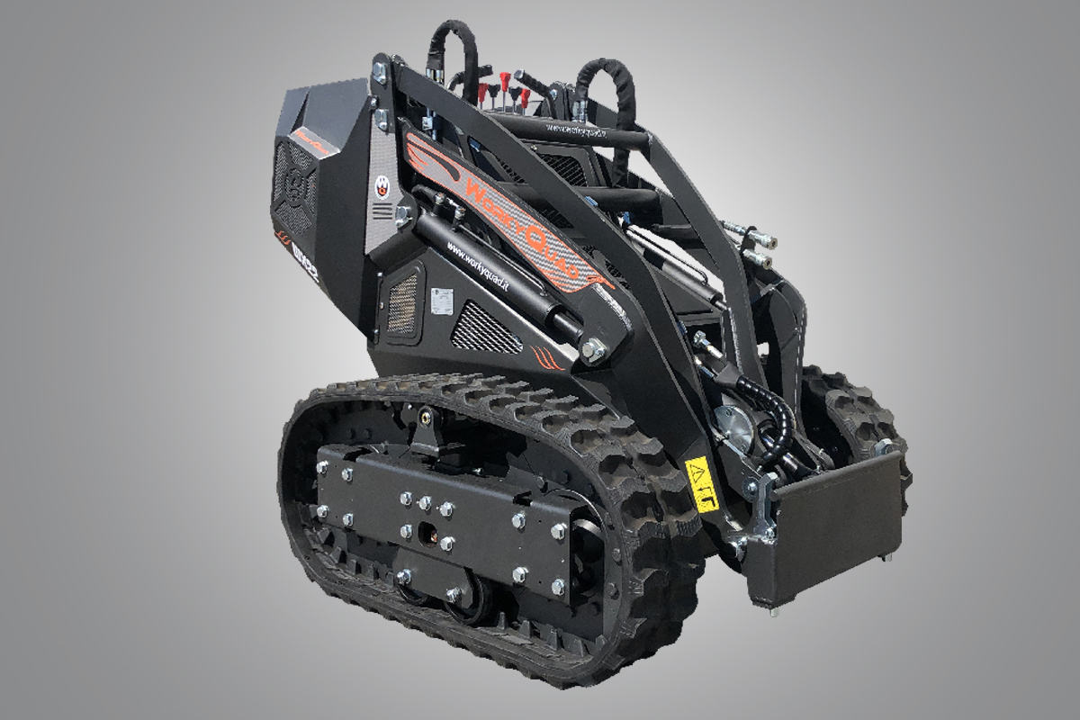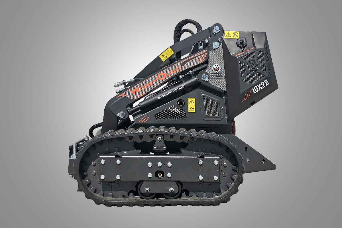 SSQ WX22 en action avec godet terre et fourche à palette.